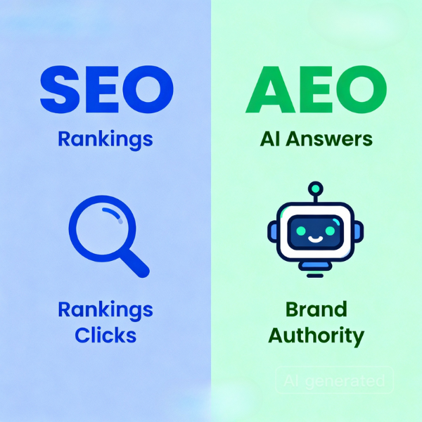 In short: SEO gets you clicks. AEO gets you recognized as an authority — even when no one clicks.